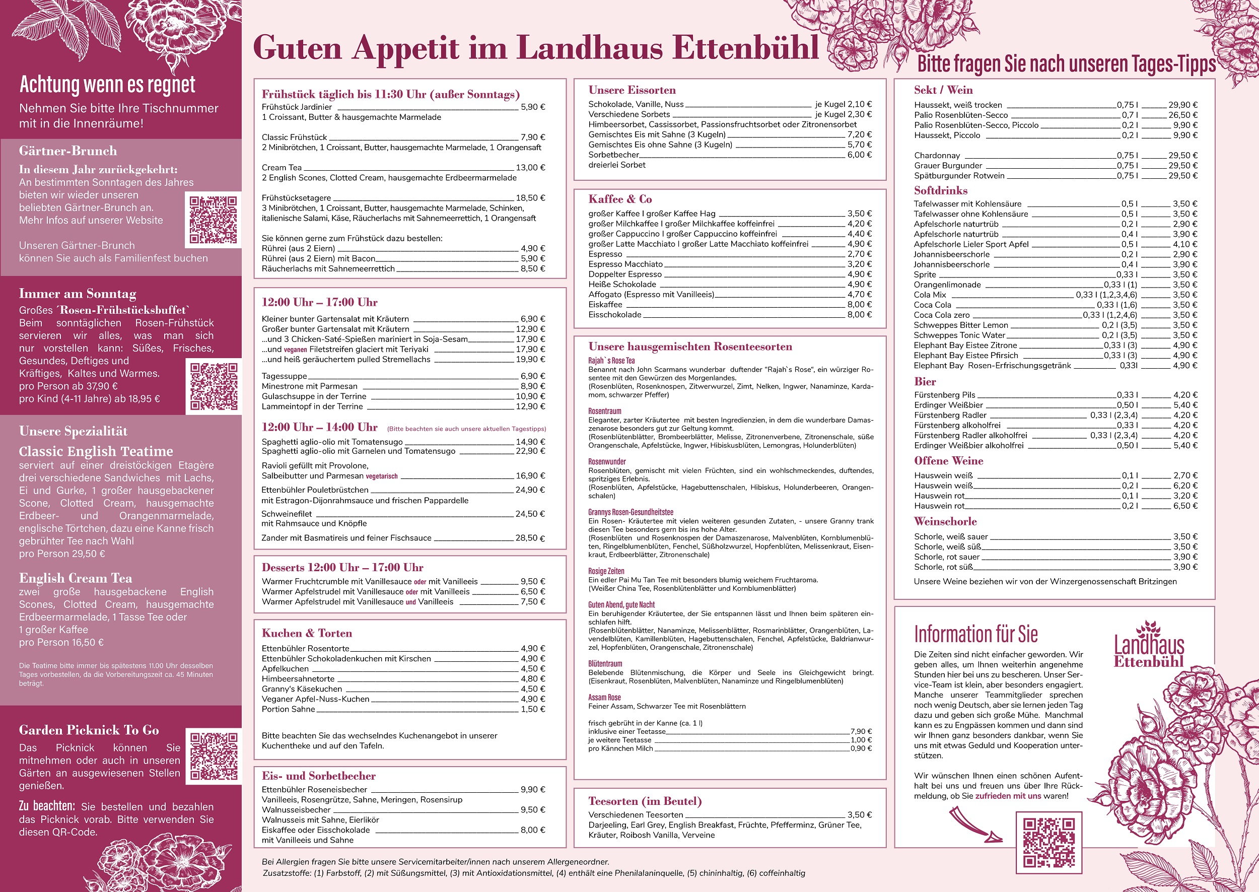 Ein Spaziergang durch unseren 7 Hektar großen Garten macht Appetit. Vielleicht wollen Sie sich aber auch vorher stärken oder die Gärten einfach mal gut sein lassen und nur zum Essen zu uns kommen? Herzlich willkommen!