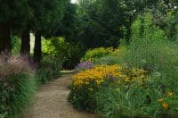 Die nordamerikanische Prärie ist eine der artenreichsten Pflanzengesellschaften der Erde. Die Pflanzen dort müssen ausdauernd und bedürfnislos sein, Brände überstehen, sich selbst versorgen. Trotzdem sind sie in ihrer Vielfalt wunderschön. Einen solchen Präriegarten hat unser Obergärtner James Foggin vor zwei Jahren angelegt, 2014 erfolgte der zweite. Unter dem Einfluss der „Neuen Stauden-Bewegung“ verwendeten wir viele Gräser und Pflanzen, deren Blüten viel stärkere Farben besitzen, als wir sonst im Garten dulden. Unser Vorhaben war es, einen Garten für den Spätsommer und Herbst anzulegen. Ab Juli zeigen sich Allium, Euphorbia und Echinacea. Etwas später folgen Agastachen, mehrjährige Sonnenblumen und Sonnenbräute. Zum Schluss blüht eine Serie von Margeriten und Astern. Aber das Ende der Blütezeit ist nicht gleich das Ende der Saison. Die vertrockneten Blütenstände der Stauden und Gräser lassen wir den Winter über stehen. Diese bieten nicht nur wertvolle Nahrung für die Vögel, sondern bilden auch, als mit Raureif verzierte Naturskulpturen, eine kleine Mahlzeit für unsere hungrigen Augen in der dunklen Jahreshälfte.