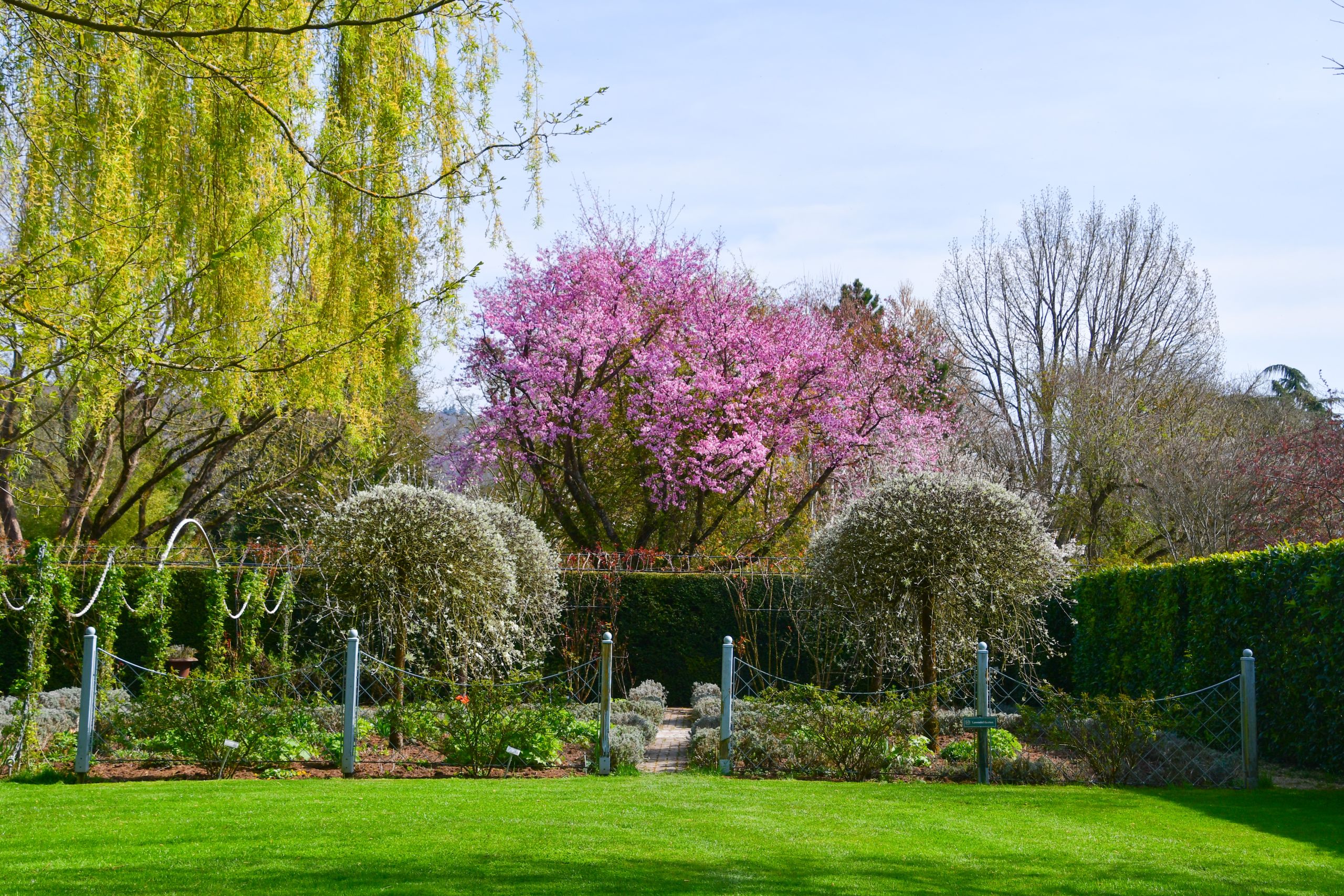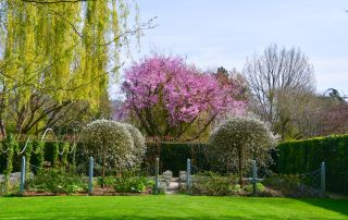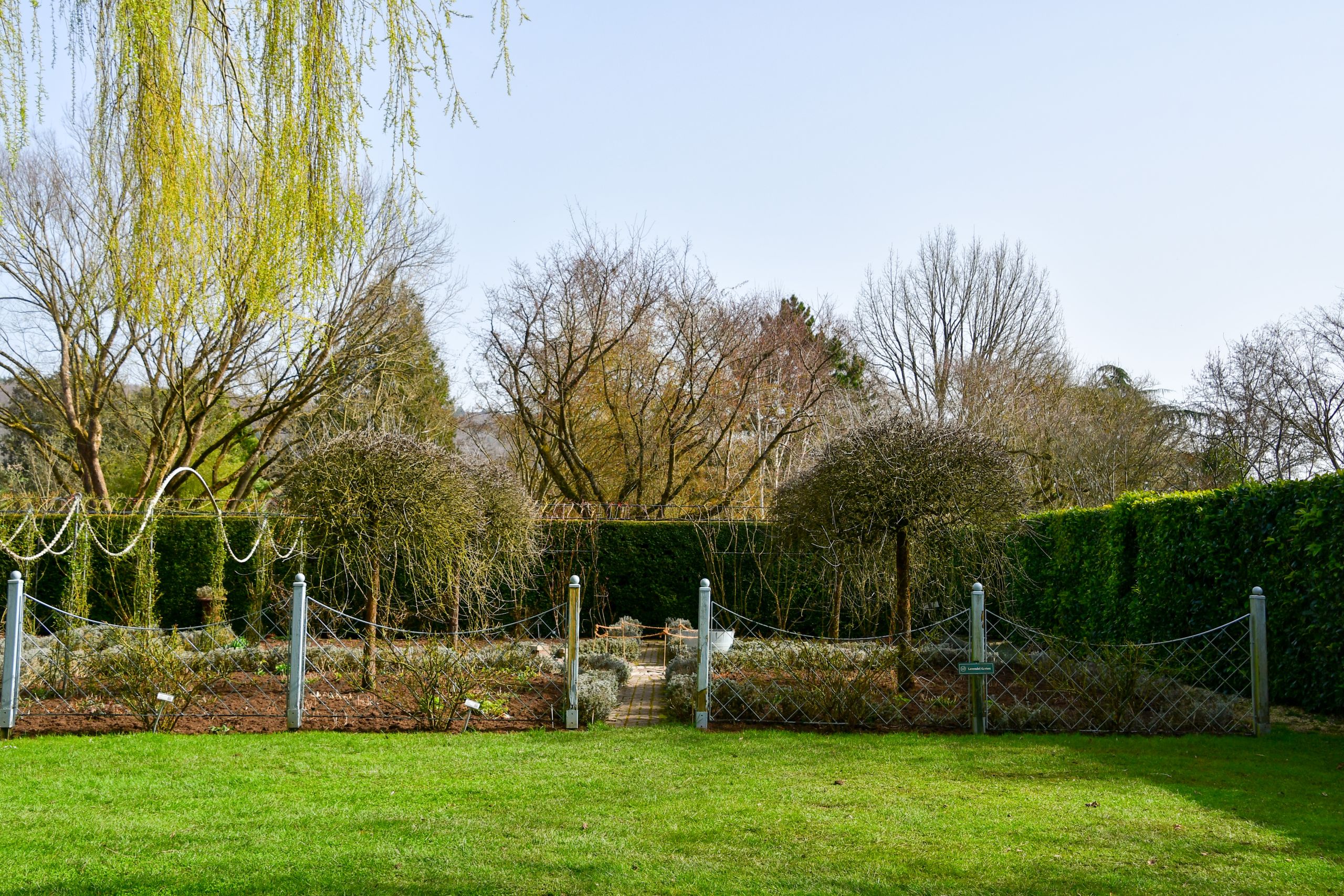 Hecken- und Formschnitt ist jetzt überall bei uns in den Gärten angesagt. Unser Gärtnerteam schneidet mit großer Präzision und unglaublich zügig alles an Hecken und Formgehölzen zurück. Zuerst war die schwebende Hecke des Kräutergartens aus Cercidiphyllum dran, gefolgt von der Rotbuchenhecke und den Hainbuchenhochstämmen im Wassergarten und den Leyland Zypressen der Yellow Brick Road. Als nächstes geht´s ans Labyrinth und an die Eibenhecken.