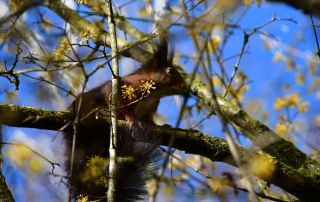 Aber Formschnitt ist nicht alles. Die Bewohner gehen vor! Hier in der Hainbuche nistet ein Vogel und unsere Gärtner haben in letzter Minute das Nest erspäht. Nun hoffen wir, dass weiter gebrütet wird, nachdem wir die schützenden Zweige stehen gelassen haben. Wenn die Kleinen dann flügge geworden sind, wird auch dieser Baum noch in Form gebracht.