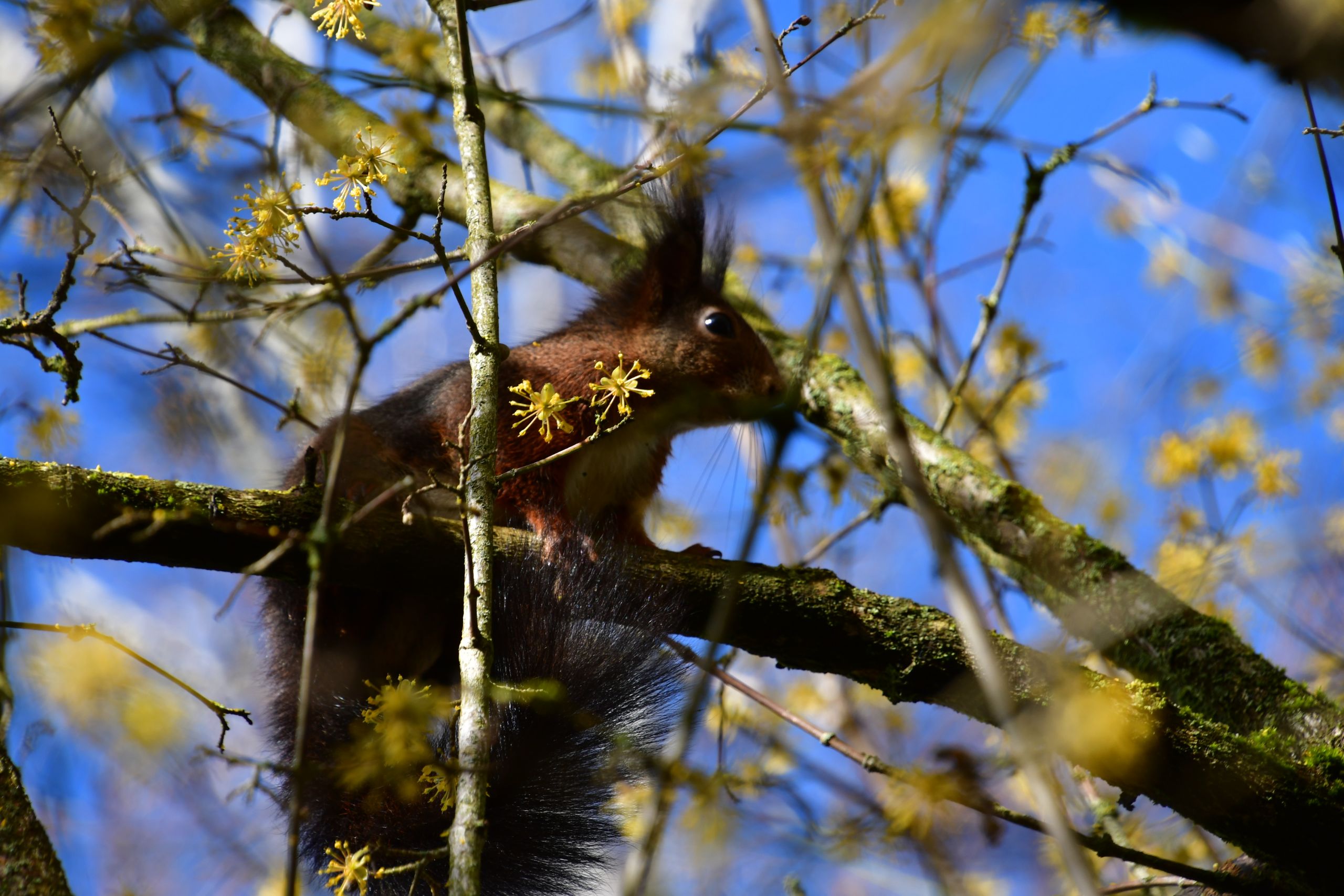 Inmitten des herbstlichen Laubs und unter dem weichen Schimmer der Novembersonne erblühen die Rosen in warmen Rottönen und goldenen Nuancen. Dieses malerische Zusammenspiel von Farben und Düften zieht nicht nur Gartenliebhaber an, sondern auch die neugierigen Besucher aus der Tierwelt, die sich auf die letzten Blüten und reifen Früchte stürzen. Der Herbst zeigt, wie Harmonie zwischen Pflanzen, Laub und Tieren eine einzigartige Geschichte des Lebens im Garten erzählt.