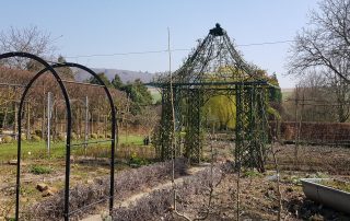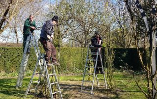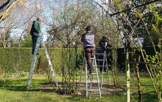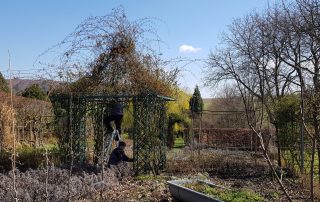 Bei Tausenden von Strauch, Kletter – und Ramblerrosen kann man schon leicht in Panik geraten, wenn es plötzlich an allen Ecken und Enden gleichzeitig sprießt. Uns geht es jedes Jahr wieder so: erst sind einem die Hände gebunden und man kann – zumindest die öfterblühenden Rose nicht zu früh schneiden, da jeder Schnitt Stimulus zum Austrieb ist und Fröste dann Schaden verursachen. Plötzlich blühen die Forsythien – für uns immer das Zeichen, jetzt schnellstens loszulegen.